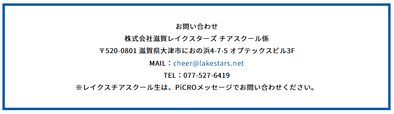 チアの更なるスキルアップを目指す方や将来チアリーダーとして活躍したい、レイクスチアリーダーズを目指したい方など、活動に興味のある方はぜひご参加ください。